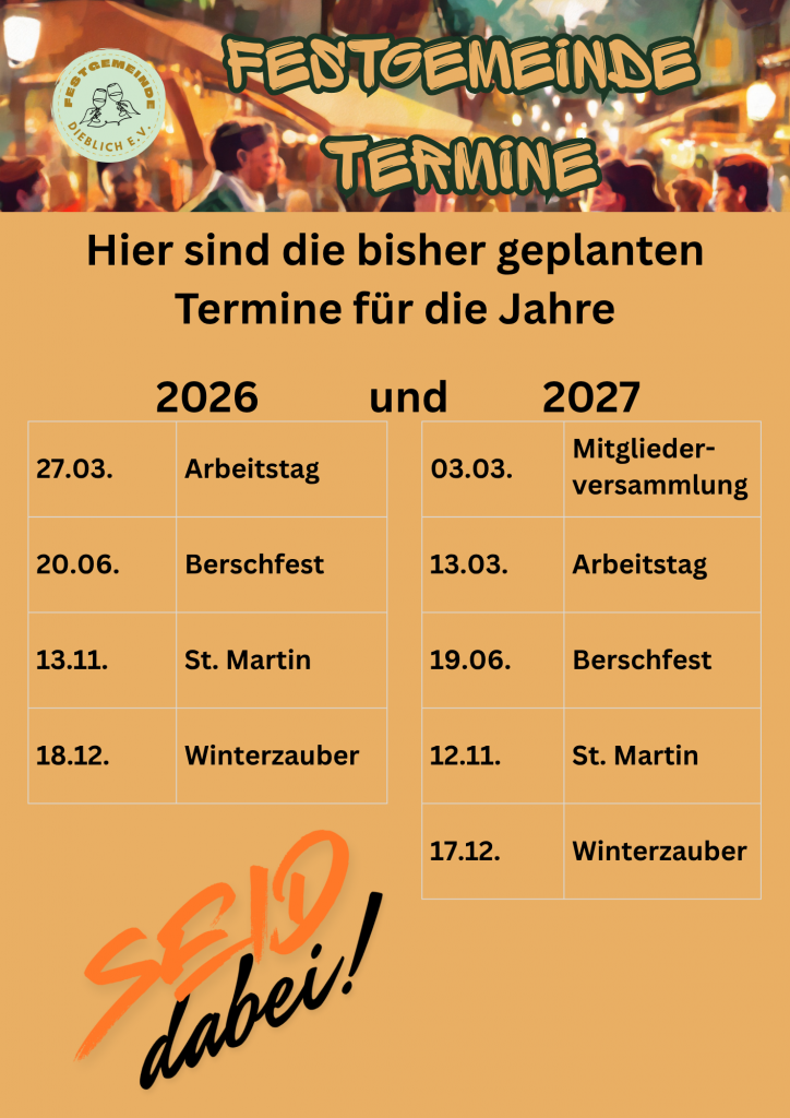 Die Festgemeinde Dieblich e.V. ist ein gemeinnütziger Verein, der die Kultur- und Brauchtumspflege in Dieblich unterstützt.